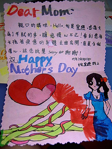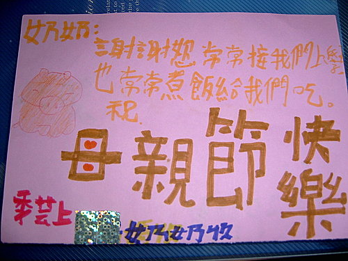 Baby製作了卡片送給大伯母,祝賀母親節快樂.
