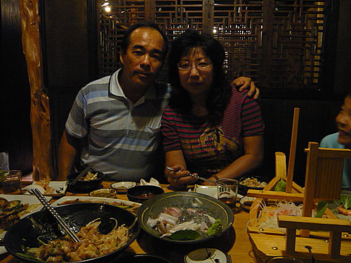 餐廳一隅.幾顆簡單的盆栽擺飾.典雅的氣息表露無疑.牆上掛著[真味只是淡]的書法作品.不禁讓人深思.人生不也是如此嗎.此言印證著簡單樸實的生活就是一種幸福呀......