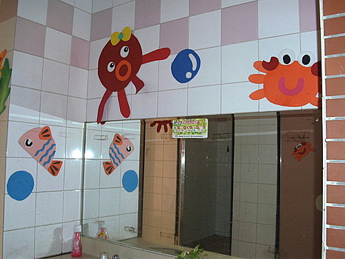 第一次到溪湖的成功國中打球, 趁著空檔繞校園一周, 意外發現女廁佈置得不錯喔!聽說男廁也有裝飾,不過今天的拍攝者是女生,所以不方便到男廁留影了...