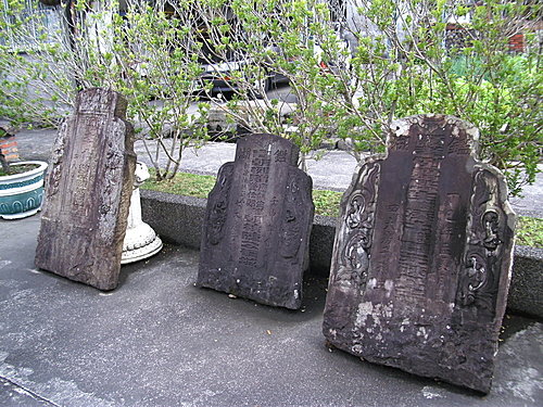 舊時的石頭製品及墓碑展出在空地上.