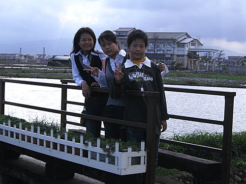湖山國小對面的水溝旁,裝飾著很多小學生作品,揣想著,對面的建築物是否為老師宿舍?