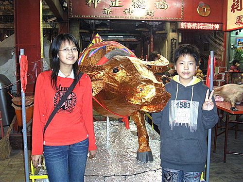 要虔誠喔!(小帥哥連續擲了三個允杯,帶回一支文昌筆回家供奉,一定要連續三個杯才行喔!)