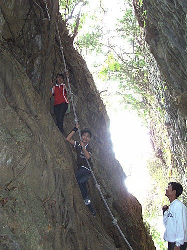 此處有好幾個攀登繩索之處,不過要注意安全才是.