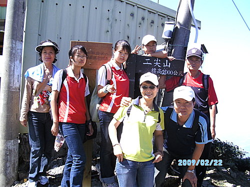 二尖山的牌子合照一張.但是上面的標高好像不正確. |