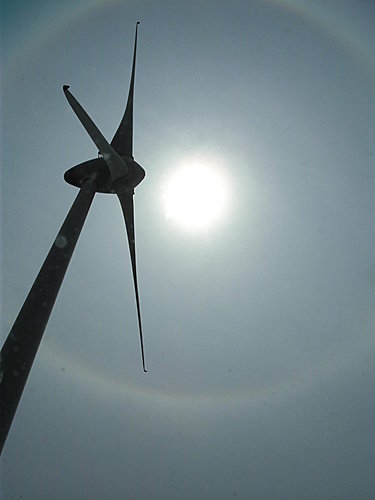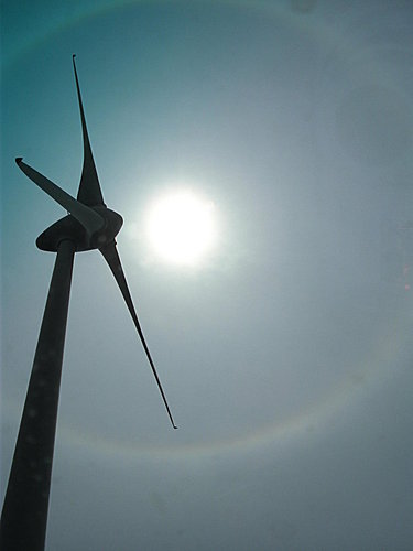 漂亮嗎!這是小美女偶然發現的"日暈", 在風力發電機下的襯托下,更顯獨特.