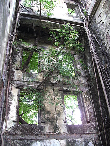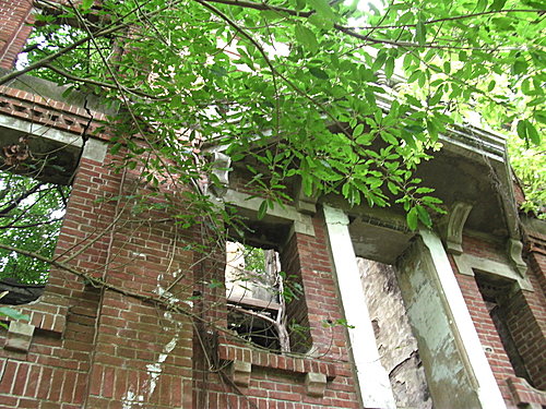 由於院中種滿大樹,正午也難見天日,屋子本身是個三層的紅磚建,
