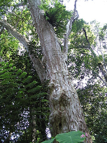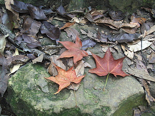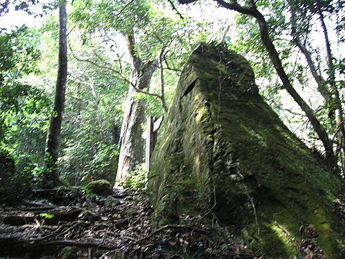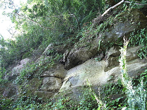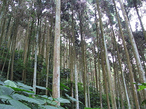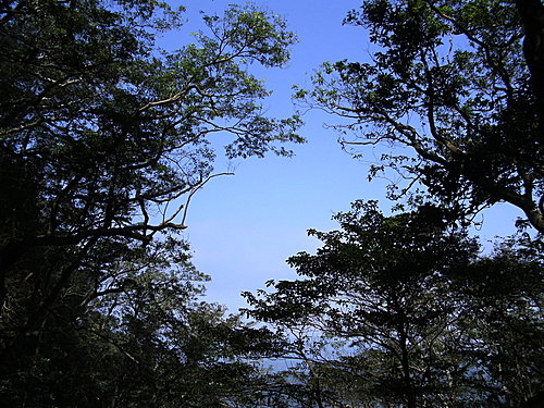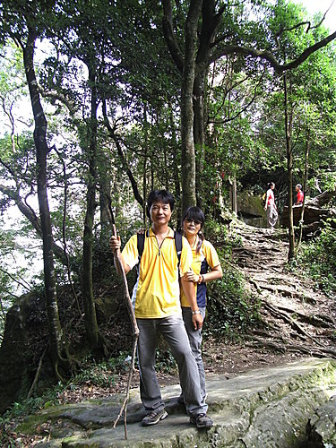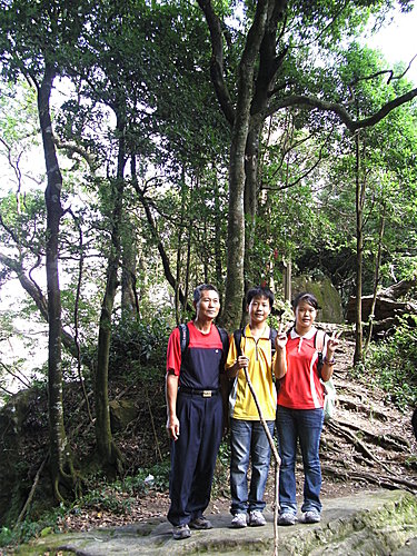 相片中有人駐足之處為一個十字路口,我們是從右方山路直切而下到灶君堂,本來是打算直行下山(這個角度看是從左方下),但途中遇到登山客告知走這一條路較好走,且林蔭多,於是當機立斷走這一條橫切環山的步道復從拇指山下山。
