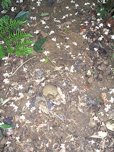 白色油桐花紛飛墜落,猶如下雪一般,也似提醒遊客秋的腳步已近。
