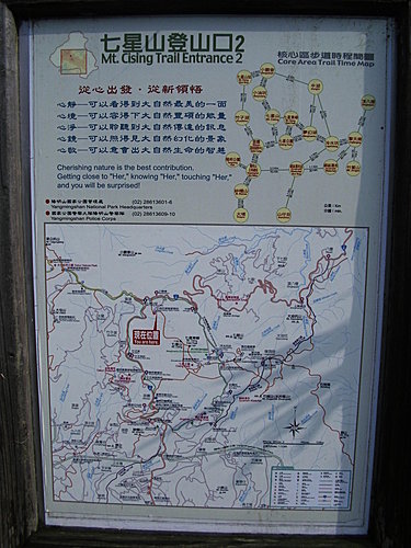 七星山有三個登山口:陽明山遊客中心旁的苗圃登山口,小油坑遊客中心旁的登山口,冷水坑遊客中心旁的登山口。我們選擇從"小油坑遊客中心旁的登山口"登山。