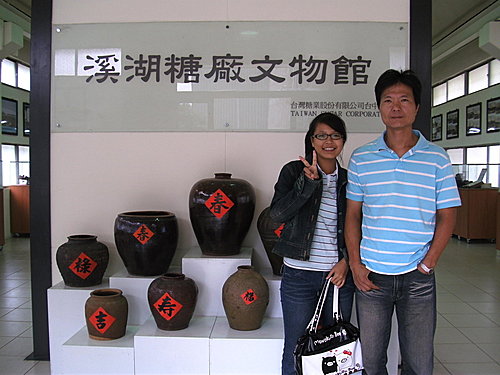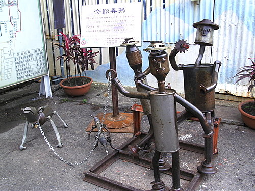 | 下午到溪湖糖廠逛逛~~ 溪湖糖廠中利用廢鐵等機器所製作出來的情境--含飴弄孫。 |