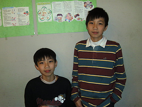 這對是雙胞胎,利用假日遊客到校遊玩,他們則在餐廳販賣麵食類等熱食,靠自己的力量籌募畢旅基金.(他們的導師也在廚房幫忙)