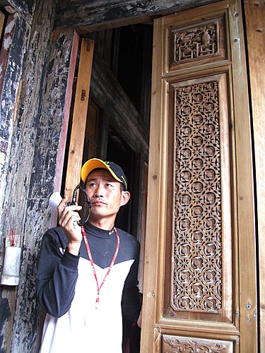 五福臨門,其實是左右門共有四隻蝙蝠,若再站立一人,則恰為"五福臨門",但我們這麼多人,那該如何解釋?