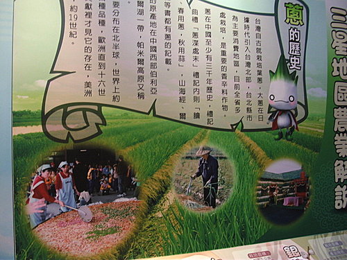 青蔥文化館內佈置著許多三星蔥、蒜的歷史、演變、種類、構造、種 植過程。
