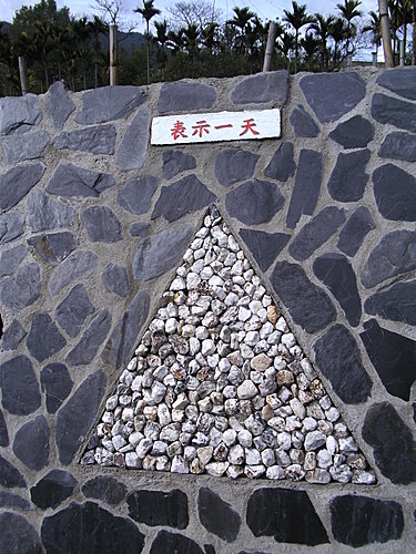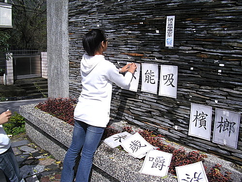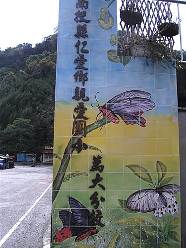 這不是我們的傑作喔!因為連下了好幾天雨,於是標語都脫落了,趁著爸比問路媽咪拍攝空檔,我和爺爺充當善心人士,來幫它黏好。