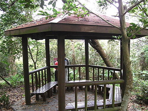 休息站到了,不過才剛走一小段路而已,加上涼亭裡有人,所以我們未進去小憩。