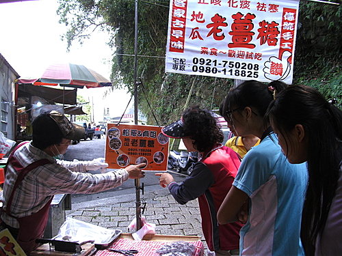 另一頭的入口處(也可算是終點處)擺了一攤"老薑糖",也會製作的奶奶詢問老闆製作方法切磋技術(其實去年冬天我們已吃了好多好多奶奶做的健康手工薑糖,很幸福耶!)