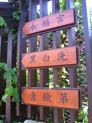 現在的黑白洗和以前前稍有不同,最初遮雨棚是較靠外的 ,因為曾被車子撞毀,因向內移了一些。 第二次則因有位老婆婆頭部撞到 ,因此又把雨棚的高度調高。黑白洗當初的規劃, 是以不破壞原始風貌為主。 故而在建築遮雨棚時 ,將其基座,至於水道側邊, 故而影響了水流 ,每逢下雨此處便會淹水 ,但這是基於保存地方文化古蹟的考量。