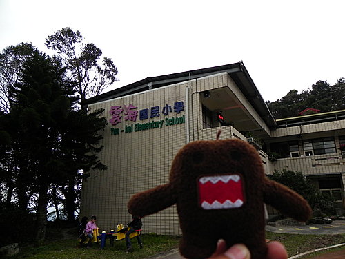在雲海國小遠眺,對照著下圖,中間突出者,應該就是「筆架山」。筆架山,海拔585公尺,位於台北縣石碇鄉,是台北近郊名山之一 ,於此山稜線上,十數峰並列,有如鋸齒一般,由此得名。
