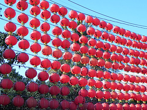 一排排的紅色燈籠高高掛,更顯現過年的氛圍.
