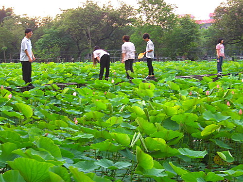但賞蓮花一定要到白河、觀音去嗎?個人倒是不以為然,這麼漂亮的蓮花一蹴可幾,其實是位於彰化縣員林鎮的"員林農工"裡的一處秘密花園。員林人常將此地當成公園,因為除了可賞花外,還有乳牛區、豬圈區、禽畜區......,最重要的是:運動休閒 處。