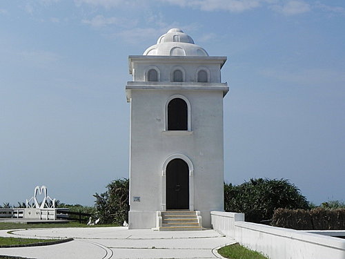 台灣有許多造型優美的燈塔,白色的塔身是三貂角燈塔基調,與象徵聖潔的白色婚紗挺搭調,加上居高臨下的開闊視野,這兒不再是試射飛彈時的觀察重地,它有了另一項甜蜜任務,變身拍婚紗的聖潔廣場。三貂角除了白色燈塔,燈塔周邊建築也是白的,還有座小巧的白教堂。