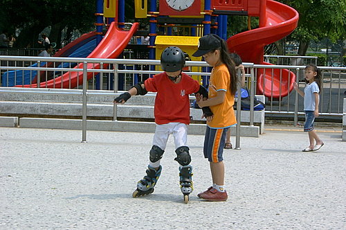 別怕!來!姐姐扶你。(豪哥,你會溜直排輪,芸芸姐姐的功勞不小喔!)
