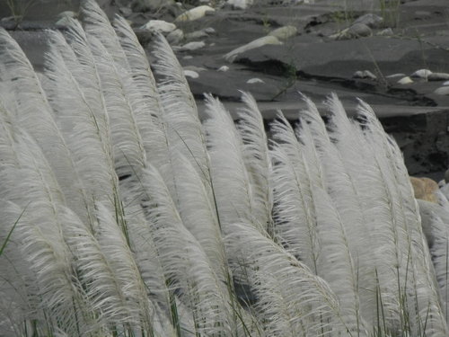 芒花在秋涼的溪岸上悄悄的開出白色花絮,