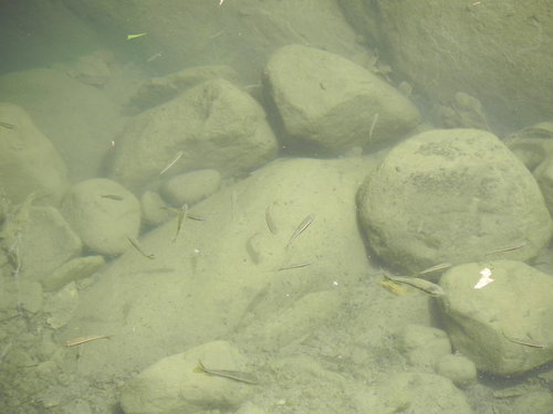 清澈的溪流,從橋上一覽無遺窺見清晰的魚群。