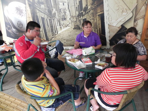老婆婆和丈母娘帶著孩子們及峻華來這家丟丟銅喝咖啡。