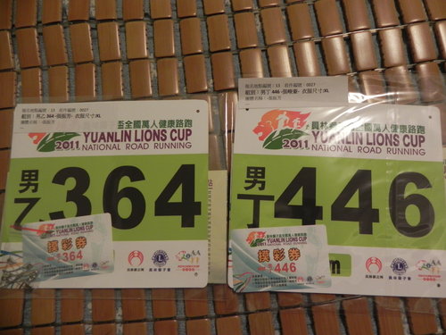 號碼牌、摸彩券、60元餐券、還有紀念衫。