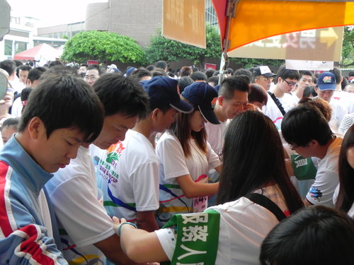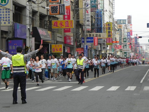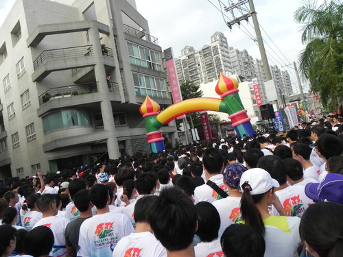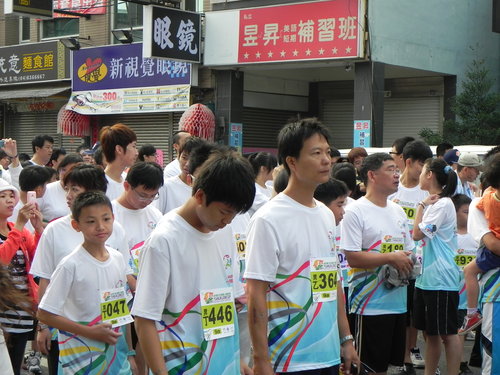 起跑點在員林國小側門外,我們卻是排在員林國小的大門前,