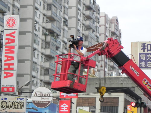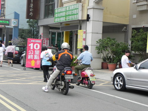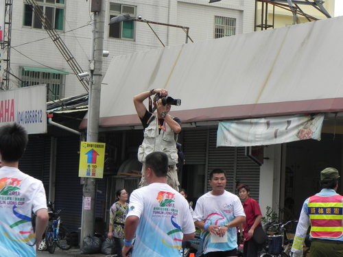 沿路都有交管,老婆騎機車抄捷徑取鏡頭。
