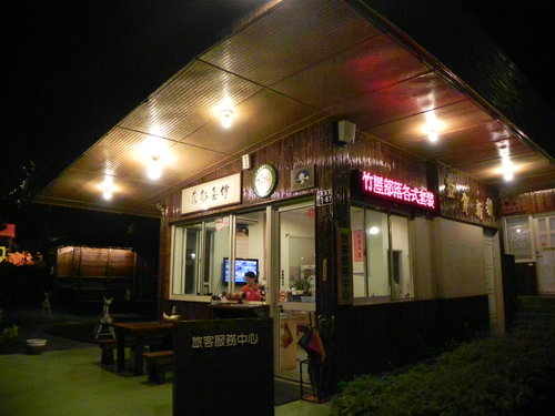 夜晚的竹屋寧靜中伴著孩子嬉戲聲,