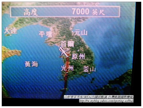 看著飛機上的電視銀幕顯示著:這架飛機即將從台北飛往首爾。