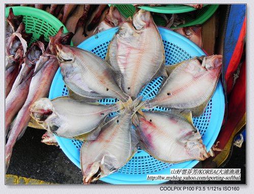 我們在漁港花了W30000,(約台幣900元)買魷魚乾名產。