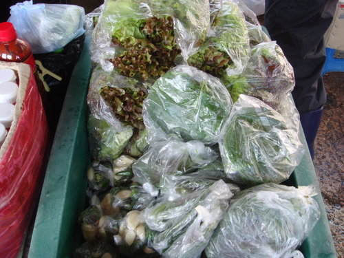 一群婆婆媽媽進入大浦漁港後,根本不想上車,試吃!採買!每人手上一袋不稀奇!