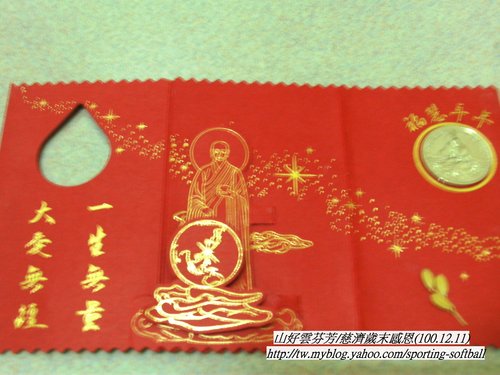 有慈濟標誌的紀念幣。