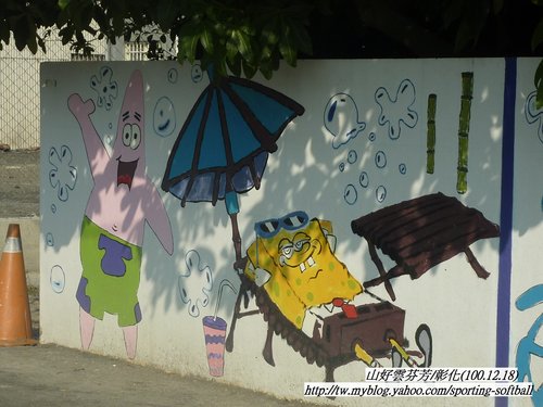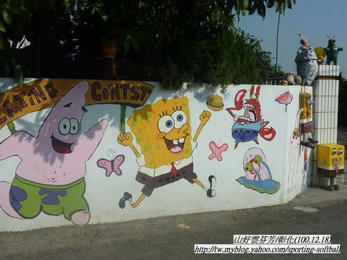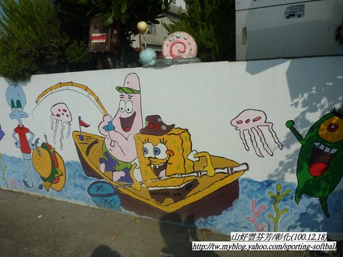 外牆彩繪的卡通圖騰。