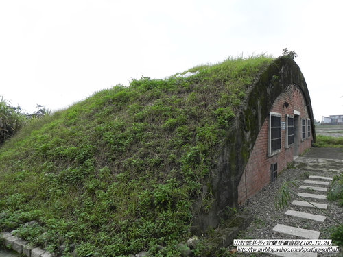 沿著水圳往前走會到看這個以前日軍隱藏戰機的機堡,目前已被整理另作他用。