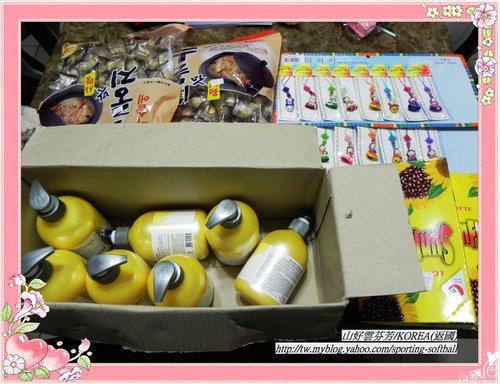 戰利品:韓國糖果、Q10美膚乳液、指甲剪、吊飾、葵瓜籽巧克力。