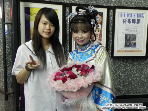 站在珊旁邊,穿著襯衫打領帶的是"員家的校長-劉澤宏校長"。(以往他也曾粉墨登場喔!)