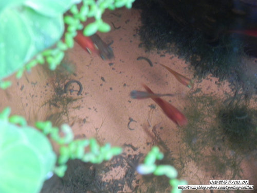 看著魚缸的水「滴滴答答」,孔雀魚也紛紛躲藏起來。