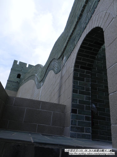在長城外是國父 孫中山先生,兩側還有兵馬俑守護。