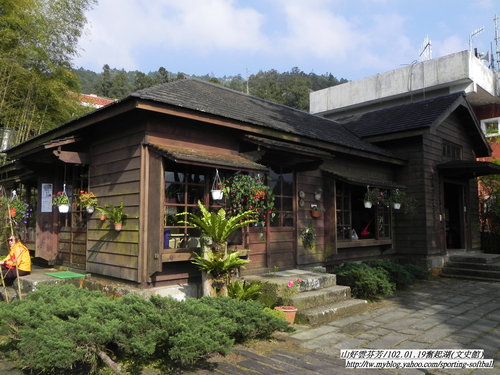 | 畚箕湖文史工作室為一幢檜木造的建築, 展示過往的鐵道文物, 並販售相關產品。 |