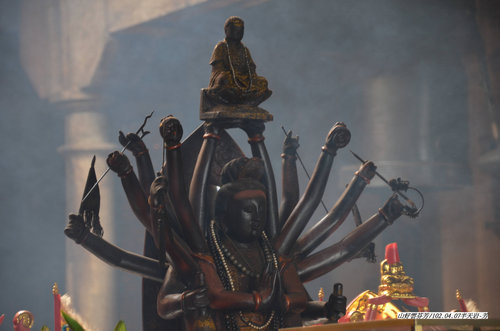 第七手商佉,第八手賢瓶,第九手掌上置般若梵篋。