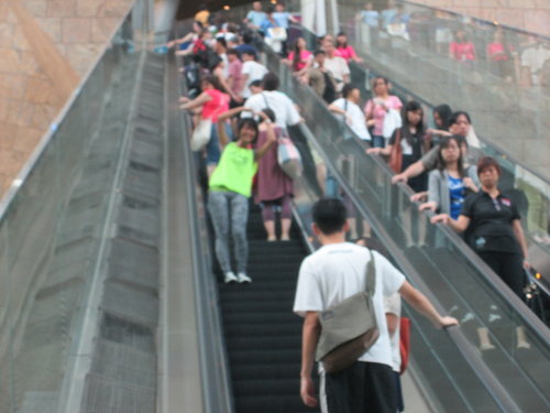 郎豪坊購物商場有十五層樓高,在4F的美食廣場(Grand Atrium),是購物中心、酒店以及商廈的交界處,這裡有一組扶手電梯可直達商場7F,為香港最長的商場扶手電梯。我從來沒有搭過如此長的電梯,看到它我也不知道為什麼興奮無比,上上下下搭了好幾次,怎麼樣都不膩~~哈哈!