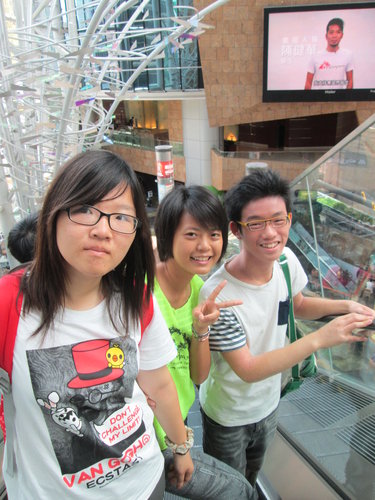 今日旅遊地點為旺角(Mongkok),路程大約四十多分鐘,我們一路上互相聊天認識彼此,一行人大多講普通話,引來許多人的側目,他們可能以為我們是中國人吧@_@。雅雯的夥伴Kathryn個性外向,我跟她很快就聊開了;朗行是皓宇的Buddy,綽號叫Jojo,雖然剛開始不熟,但我和他後來的感情卻很好,珮雲的接待叫Angel,兩人很有話聊,感情好到像親姐妹。雖然大家的年紀差上三、四歲,但溝通卻是零距離喔~~