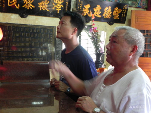 | 熱心的廟祝正為我們解說福安廟的歷史。 |