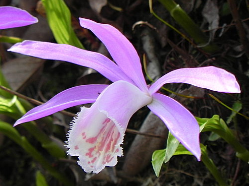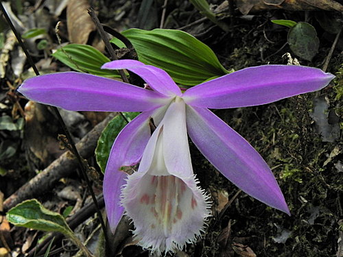 | 清新美麗又動人的可人兒叫闊葉根節蘭 Calanthe elliptica別名:(翹距根節蘭), 分佈在北部海拔1000-1500公尺之陰濕森林。 |